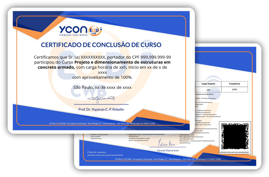 Receba o certificado da YconEaDCWB (com peso de +30 anos da Ycon formação continuada), reconhecido nacionalmente.